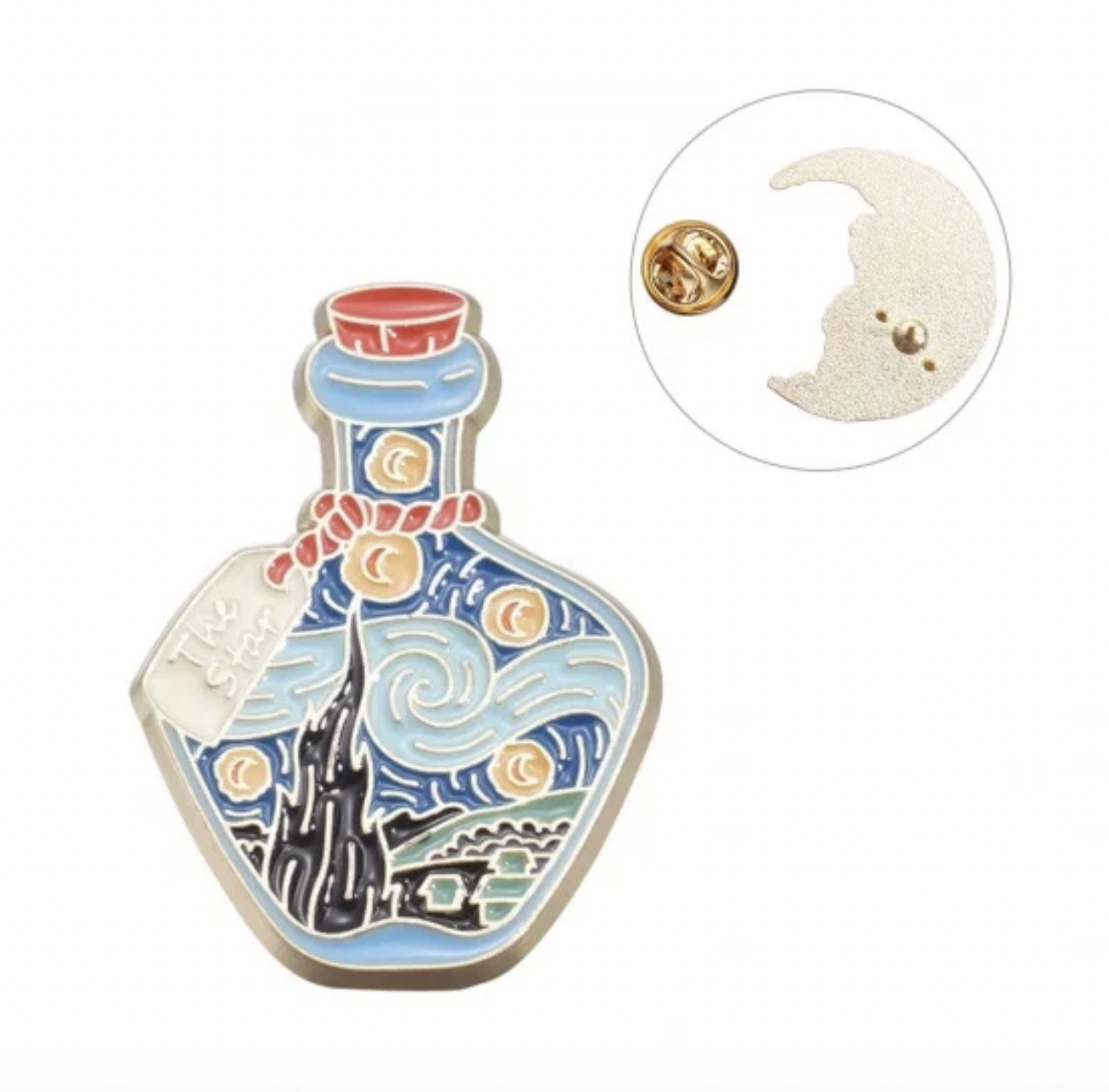 Дизайн значка вдохновлен картиной Винсента Ван Гога "Звездная ночь". Это делает его не просто аксессуаром, но и стильным элементом, подчеркивающим вашу индивидуальность.